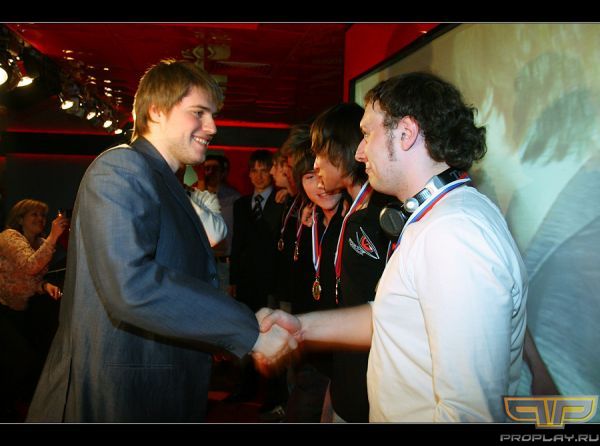 Никита Бокарев принимает поздравления от президента НПКЛ