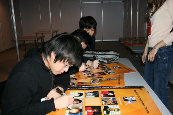 ну действительно, разве не могли нанять какого-нить переводчика? на приличных ивентах такое наверно - норма вещей. Жалко, могли бы завалить масс вопросами этих корейцев :(